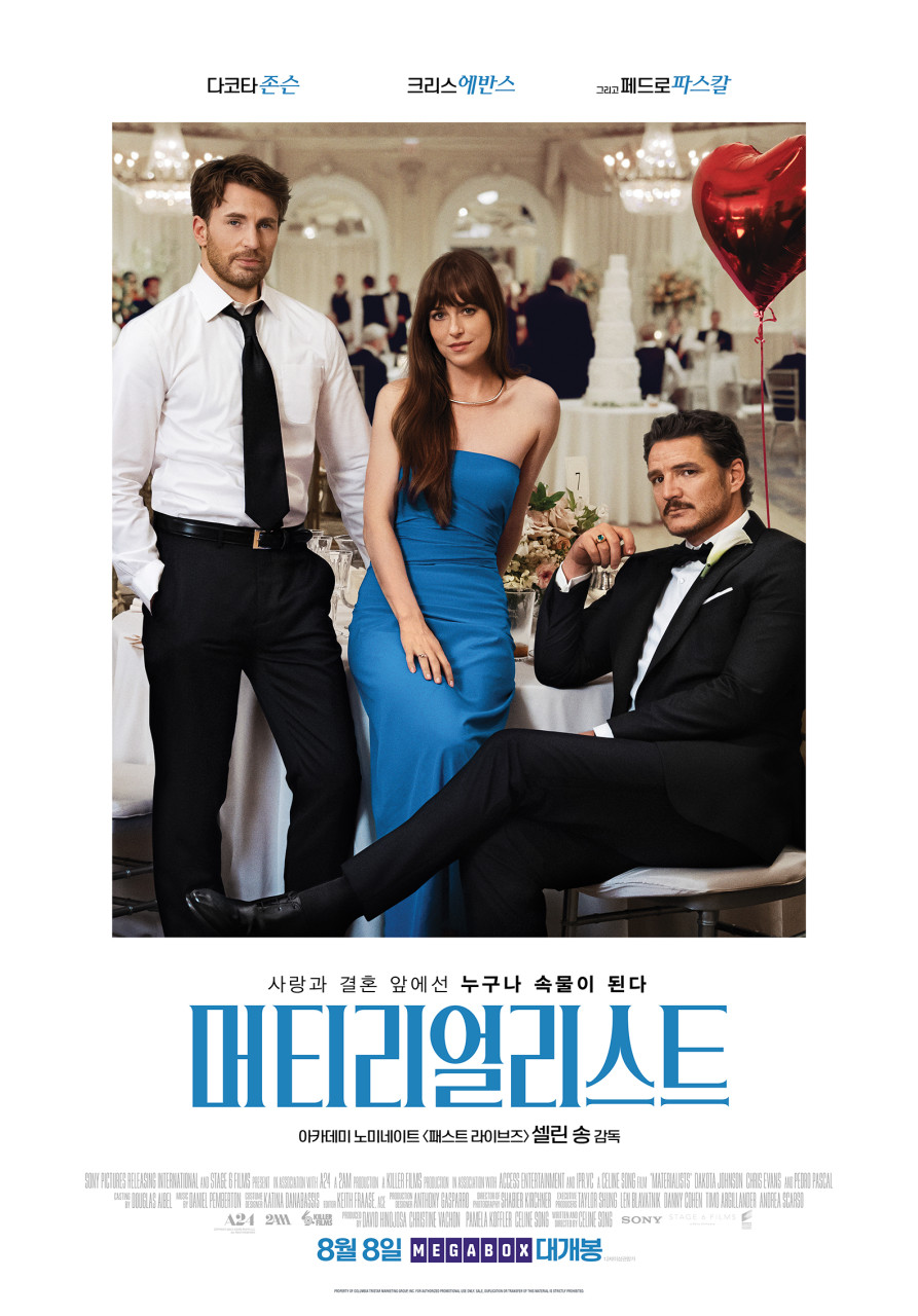 머티리얼리스트는 할리우드의 주목받는 배우들인 다코타 존슨, 페드로 파스칼, 크리스 에반스의 매력적인 조합만으로도 개봉 전부터 큰 기대를 모으고있다.